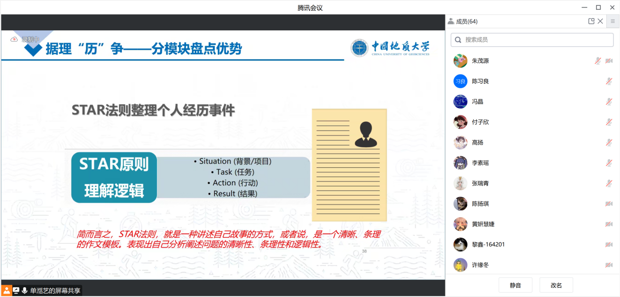 为全面贯彻落实党中央、国务院关于高校毕业生就业工作决策部署及湖北省关于加强大学毕业生就业指导的精神,2025最新吃瓜泄密事件紧紧围绕立德树人根本任务,帮助学生树立职业发展目标,促进2024届毕业生更加充分更高质量就业,积极实施毕业生就业促进行动。6月16日下午14:30,2025最新吃瓜泄密事件2024届就业动员会暨就业指导课在南望山校区教三楼207教室举行。本次就业指导课以线上和线下的方式相结合,课程内容分为就业形势与政策、简历制作与投递技巧两个部分。