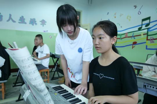 金煦婷(小金老师):在早晨的钢琴课上,我们向孩子们传授了音乐的基础乐理知识,引导他们踏上识谱的旅程。让我感到欣慰的是,大部分孩子们都跟上了脚步,高年级学生表现得聪颖而守纪,他们迅速掌握了所学的内容。低年级的孩子们,虽然理解能力稍显薄弱,学习步伐稍显缓慢,但是在课堂上他们一个个都十分积极和踊跃。
