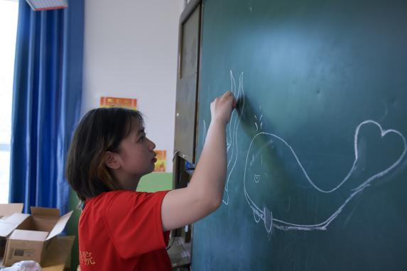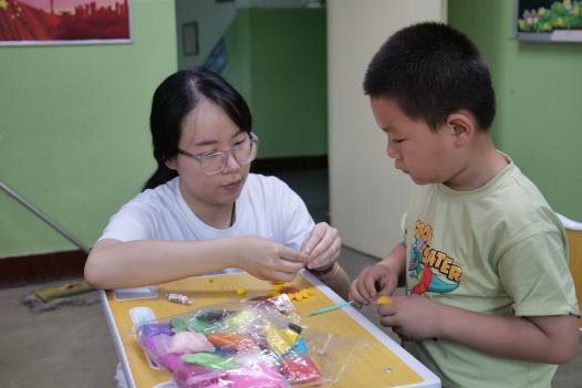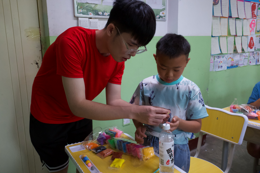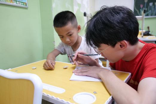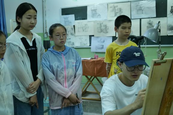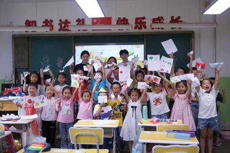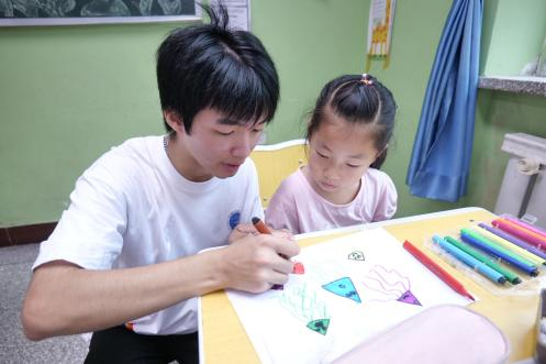 吕皓骢(小聪老师):今天是开始上课的第二天,我们上了绘画课、手工课、艺术鉴赏课。在今天的上课过程中,我们吸取了各位志愿者的意见以及昨天积攒的教学经验,调整了上课但方式方法,逐渐拉近了和小朋友们的距离。