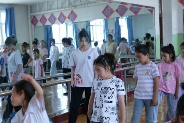 徐璐珈(小鹿姐姐):今天又来了新的小朋友。上午下午的课程安排是教小朋友们学习拉丁舞中的前进后退走步,复习之前教学的时间步等。小朋友们总是充满了好奇,有各种想法和问题,也充满了活力和创造力。休息期间和当地的小朋友学习了新疆舞的动作,感受到了民族舞蹈的魅力。