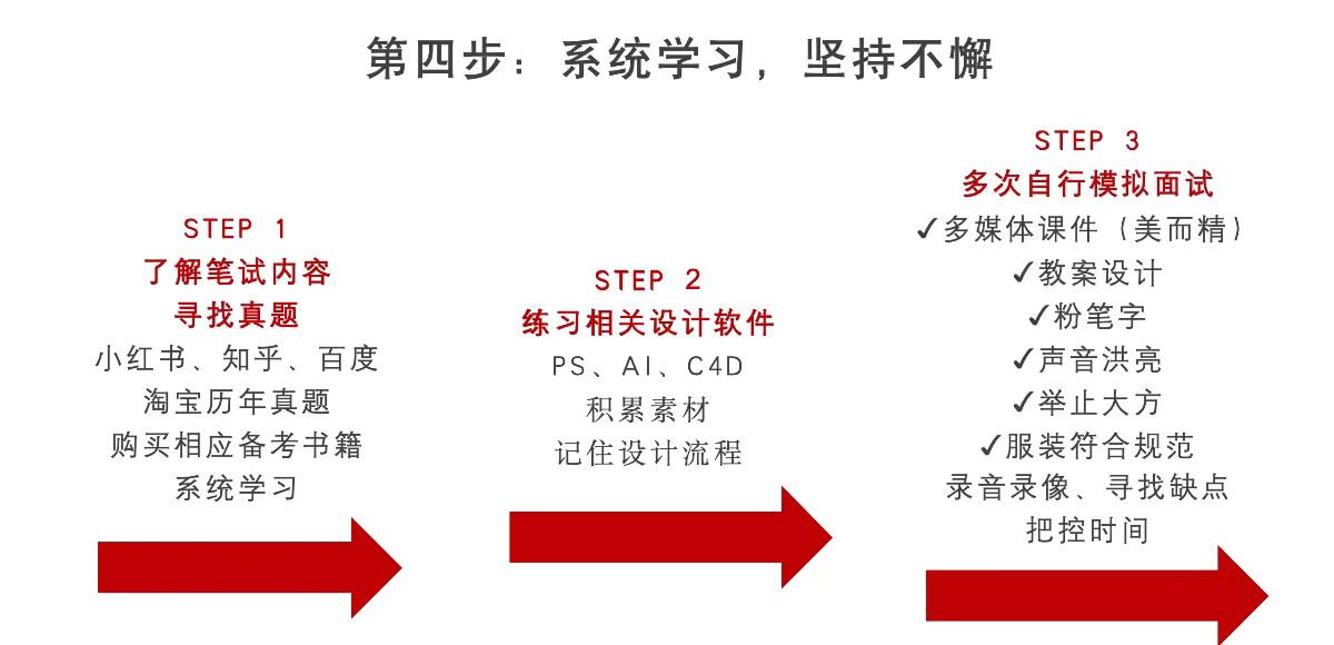 其次,张巍学姐结合个人经历,从明确方向、了解职业、收集资料、系统学习四个方面为同学们梳理教师岗备考时可能遇到的问题和解决措施,并鼓励同学们在准备阶段模拟面试现场,多加练习。