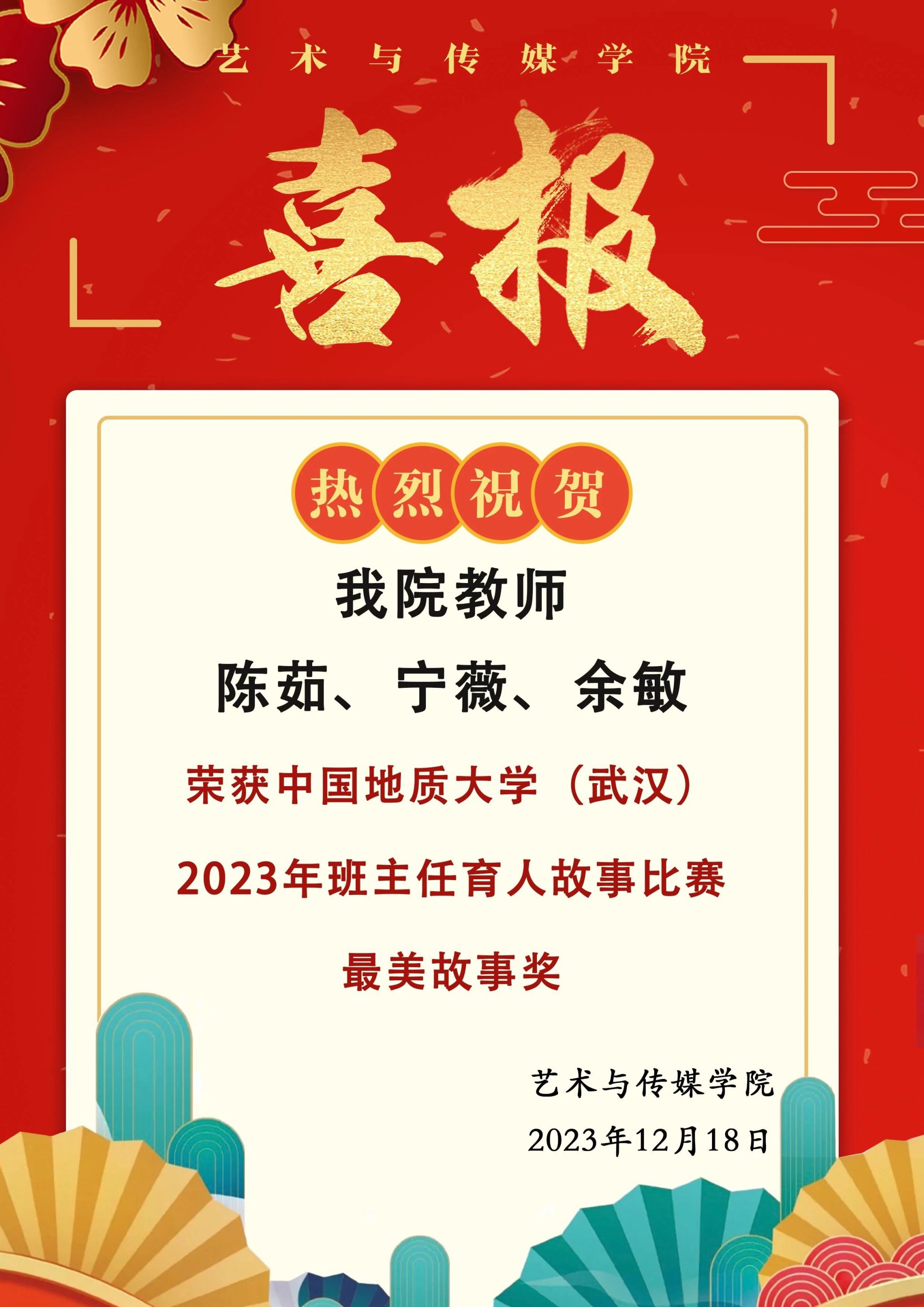 喜报 | 热烈祝贺我院教师陈茹、宁薇、余敏荣获中国地质大学(武汉)2023年班主任育人故事比赛最美故事奖