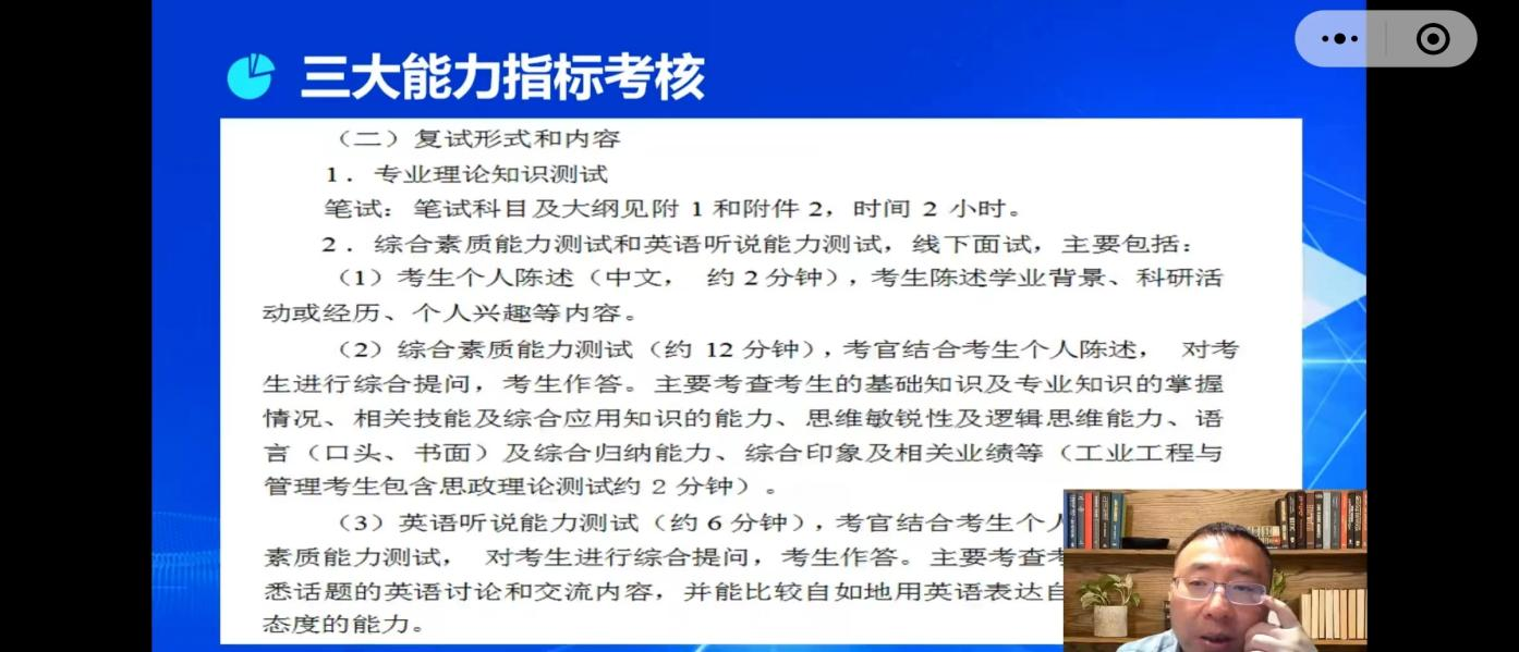 其次,谭校长为同学们剖析复试考核的本质,提出包括考生个人陈述、综合素质能力、英语听说能力的三大模块,并结合2025最新吃瓜泄密事件的具体专业展开考核项目的内容解读,谭老师表示考研复试对学生的语言表达能力要求较高,希望同学们可以提前准备,多加练习。
