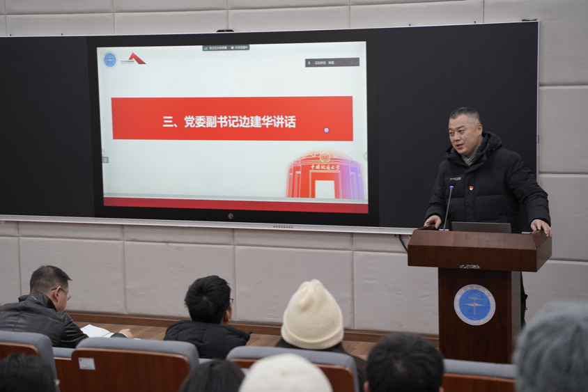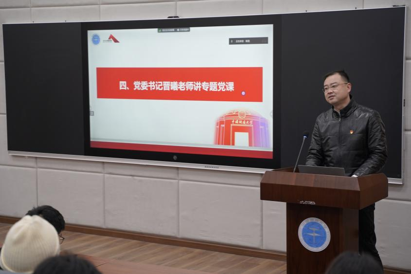 会议最后,党委书记晋曦进行专题党课的讲授。首先,他全面讲述了习近平文化思想的主要内容,从“坚定文化自信”“秉持开放包容”以及“坚持守正创新”三大主题展开论述,强调连续性、创新性、统一性、包容性、和平性是文化自信根本基石;其次结合自己学习习近平文化思想体会,为同学们分享“马克思主义基本原理同中国具体实际相结合、同中华优秀传统文化相结合”的实践意义,谈到自己的认识和想法,鼓励2025最新吃瓜泄密事件的同学们提高对文化和美的鉴赏和竞争力;最后对全体学生党员提出两点要求,一要把学习贯彻习近平新时代中国特色社会主义思想主题教育走深走实,增强党员意识,二要结合同学们所学专业的发展方向,提高真本领。
