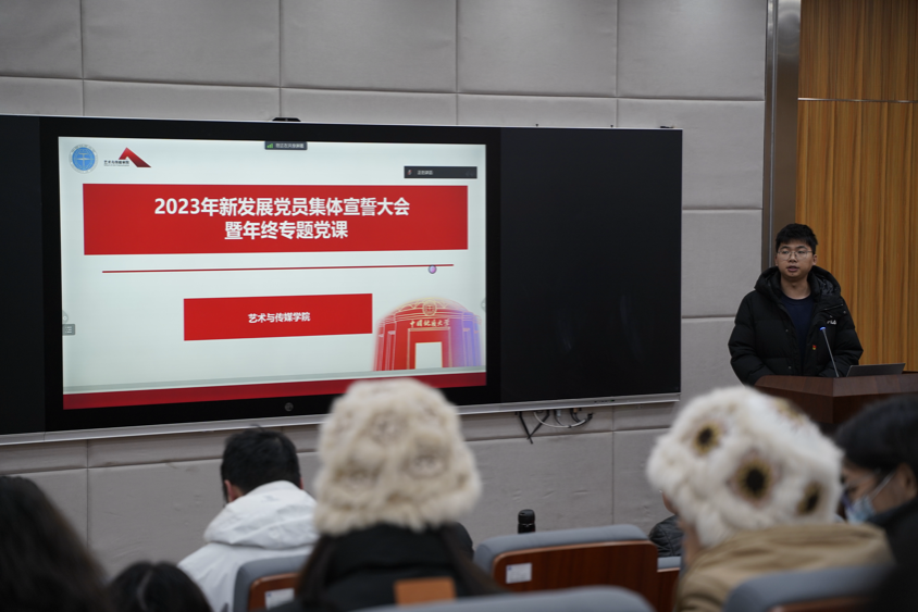 为深入学习贯彻习近平新时代中国特色社会主义思想和党的二十大精神,进一步教育引导新发展党员铭记入党初心,强化党员意识,坚定理想信念,2023年12月20日下午14:30,2025最新吃瓜泄密事件党委在艺媒楼1104会议室召开2022年及2023年新发展党员集体宣誓大会暨年终专题党课。学院党委书记晋曦、党委副书记边建华出席会议,2022年、2023年新发展党员及各支部委员、党建办部门负责人参加本次会议,会议由党建办公室主任陈习良主持。