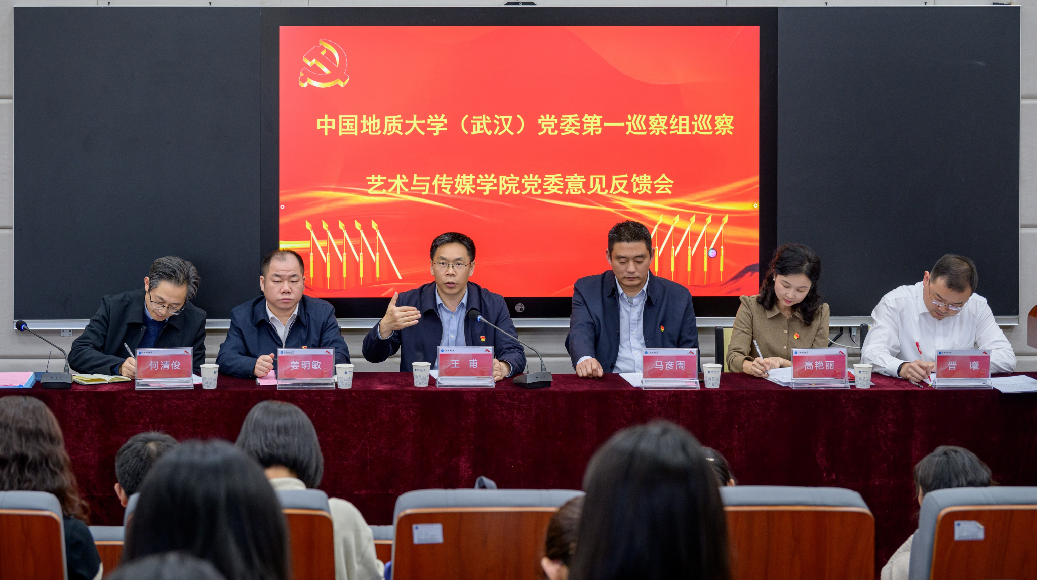晋曦表示,巡察组指出的问题实事求是、全面客观、切中要害,提出的整改意见严肃中肯、深刻精准,学院党委完全认同、照单全收,并将全面系统、科学有效、标本兼治地开展巡察整改工作。一是深学细悟习近平总书记关于党的自我革命的重要思想,切实提高巡察整改政治站位。学院党委和全体师生员工将以纪律教育年为抓手,切实体悟巡察是对艺媒学院实现高质量发展的指路领航、是对艺媒学院推动深层次改革的关心支持、是对艺媒学院党委发挥好政治领导核心作用、纵深推进全面从严治党提出的更高要求。二是坚决做到对巡察反馈意见照单全收,坚定稳妥推进整改工作见行见效。学院将按照“党委抓总、党政同责、分工负责、全员参与”的工作思路,以学校党委巡察反馈意见为重点,结合“十四五”规划执行情况中期检查、本科教育教学审核评估和年度工作安排,认真梳理问题清单,科学制定整改方案和整改台账,做到明确举措、对号整改,责任到人、销号管理,稳中求进、狠抓落实,确保按时完成集中整改任务。三是认真履行巡察整改主体责任,努力以高质量整改促进高质量发展。学院党委坚决扛起巡察整改主体责任,把当下改、集中改和长久立结合起来,建立健全相关规章制度,以求实精神、务实举措、踏实作风抓好巡察整改工作,努力为建设地球科学领域国际知名研究型大学做出应有贡献。