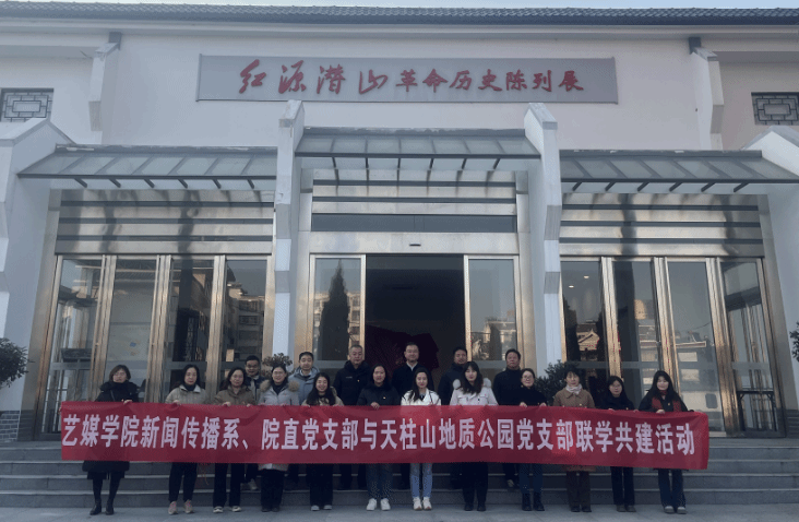 以高质量党建引领高质量发展和拓展特色实践育人基地是艺媒学院落实学校“提升增效”年度工作主题的重点任务。12月27日至28日,学院两个样板党支部——新闻传播系党支部和院直党支部赴安徽潜山、与天柱山地质公园管理中心党支部开展联学共建活动,并签订科普传播人才培养实践教学基地合作协议。