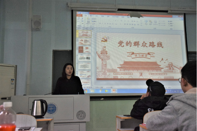 第七讲由我院2016级本科生辅导员兼院团委副书记单湉艺老师为大家讲解党的群众路线的形成,她结合三个关于群众路线的短视频向大家生动形象地展现了什么叫做“群众路线”,群众路线的形成、发展过程,以及定义、理论背景、实践背景等。