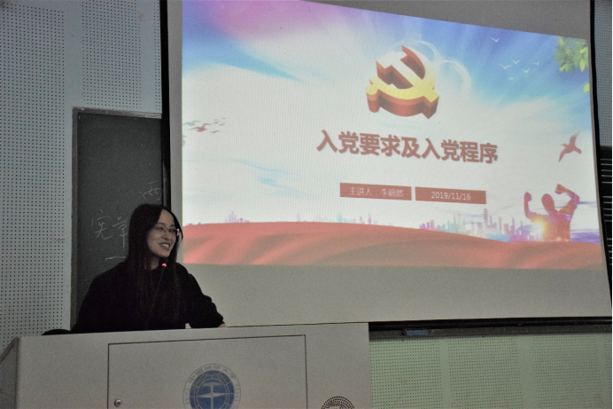 第四讲是马克思主义学院李蔚然老师从中国共产党的性质、申请入党的条件与动机、发展党员的程序与方法、主要材料书写标准与要求四个方面给我们详细讲解了“入党流程”。李老师向入党积极分子强调,切莫入党前拼命干,入党后松一半;谨记端正入党动机是一辈子的事情。组织上入党一时一事,思想上入党一生一世。