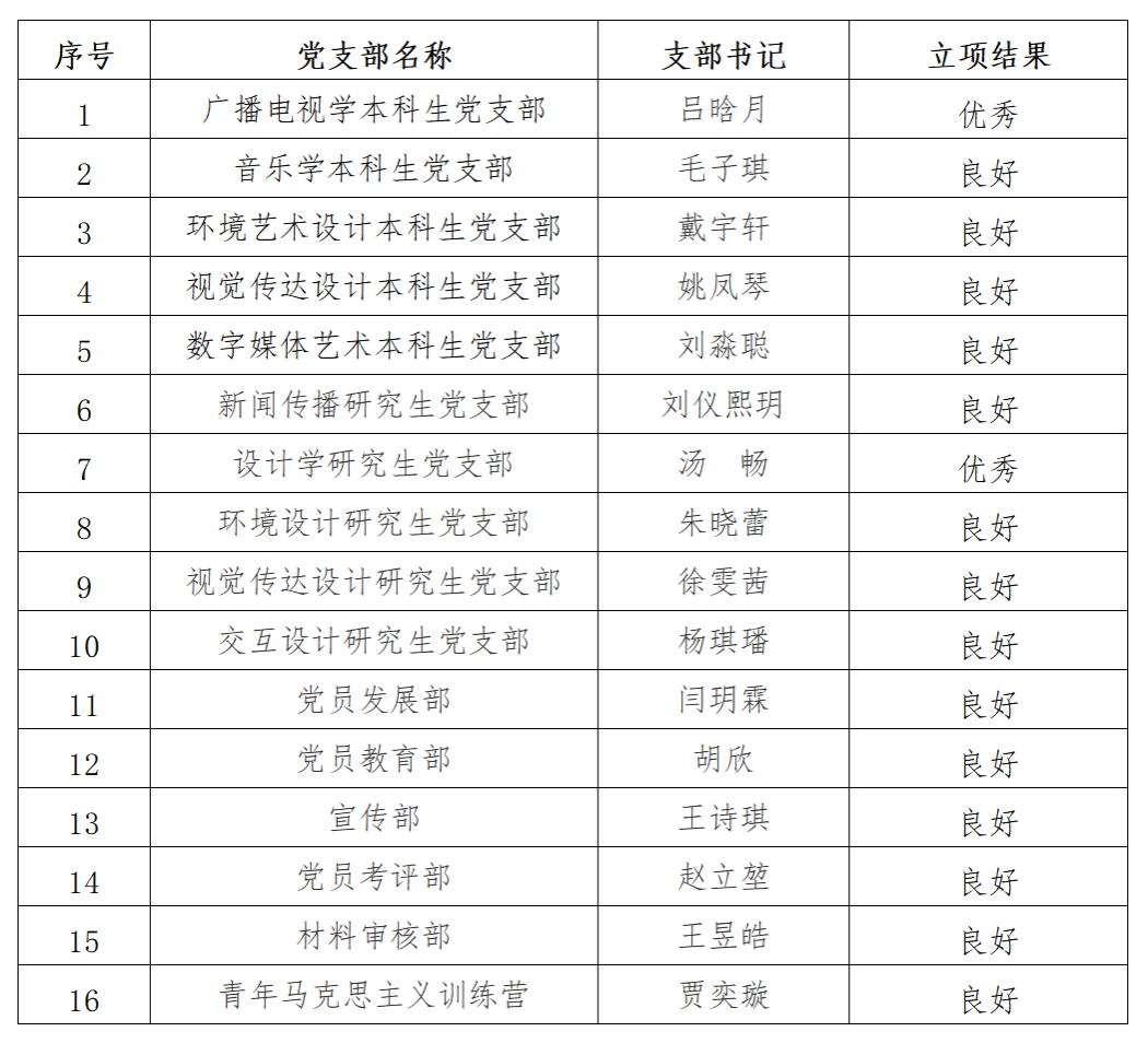 经学院党委组织评审,本次10个学生党支部、党建办5个部门及青年马克思主义训练营项目立项为“通过”。